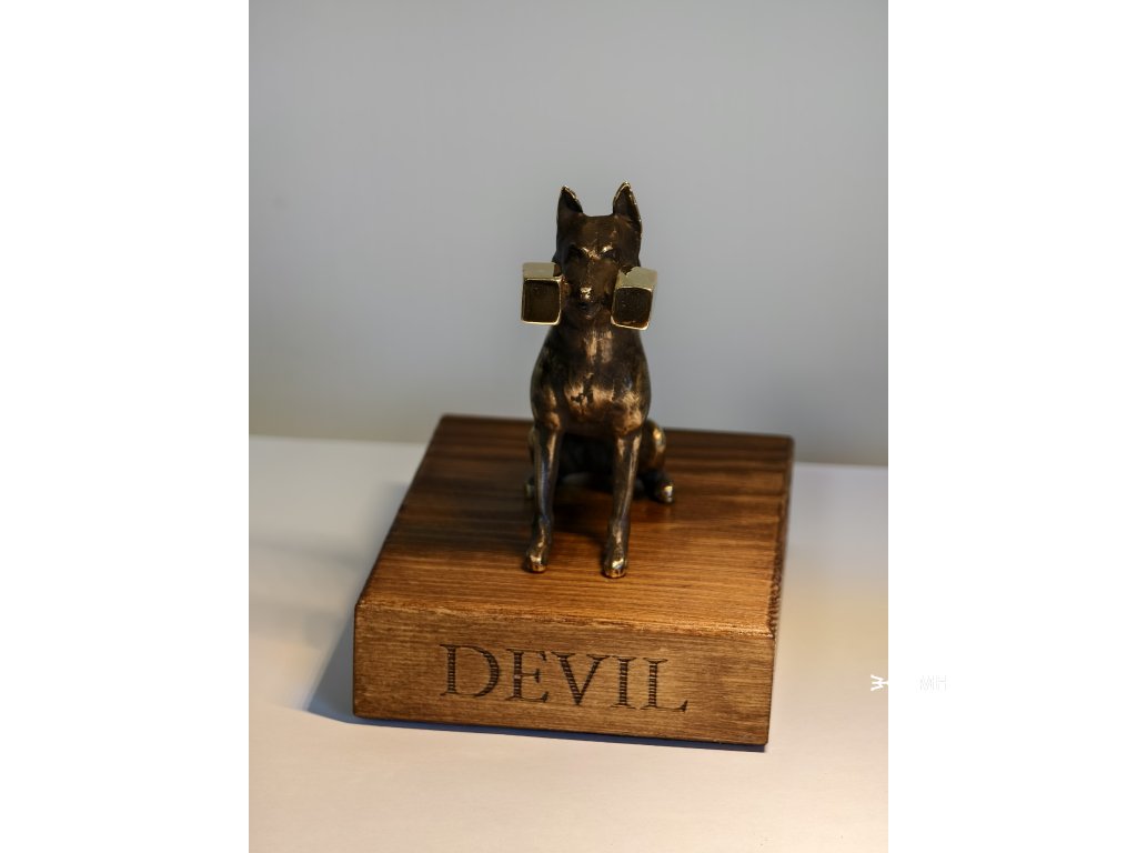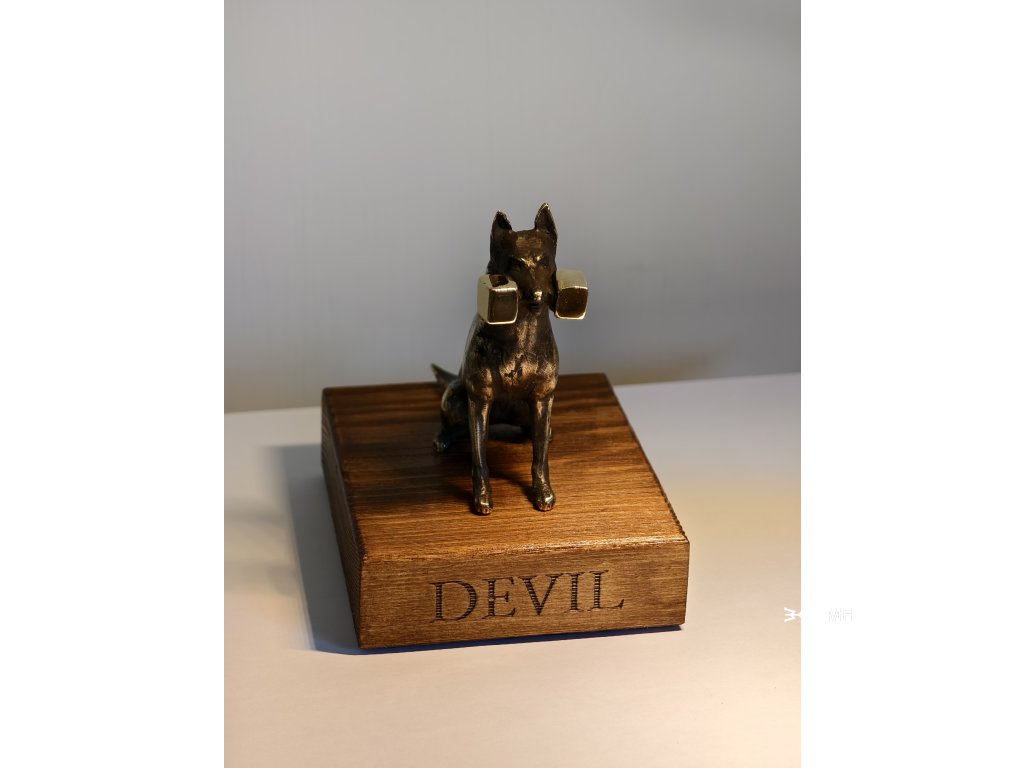 Předlohou pro tuto sošku byla fena holandského ovčáka One Devil von der Herdergang - dvojnásobná mistryně světa v IGP 3 WDSF.